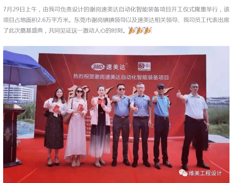 维美.喜讯 | 热烈祝贺我司设计的速美达自动化智能装备项目正式开工!