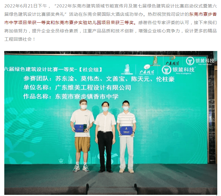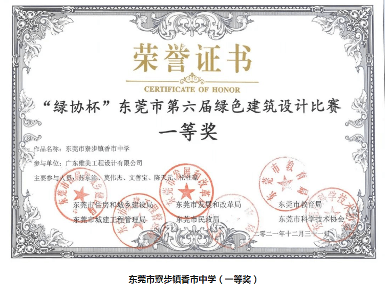 维美.喜讯 |祝贺我司寮步香市中学项目及寮步实验幼儿园项目分别荣获“绿协杯”东莞市第六届绿色建筑设计比赛一等奖和三等奖