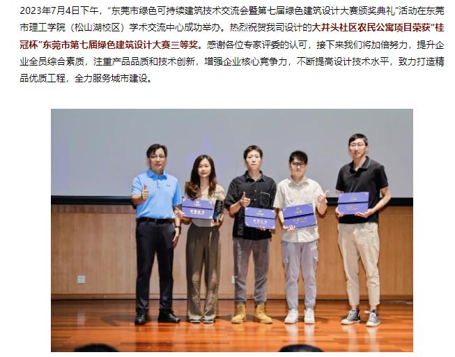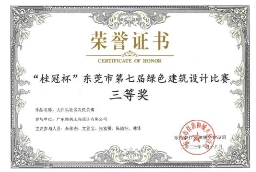 维美.喜讯 |热烈祝贺我司大井头社区农民公寓项目荣获“桂冠杯”东莞市第七届绿色建筑设计大赛三等奖